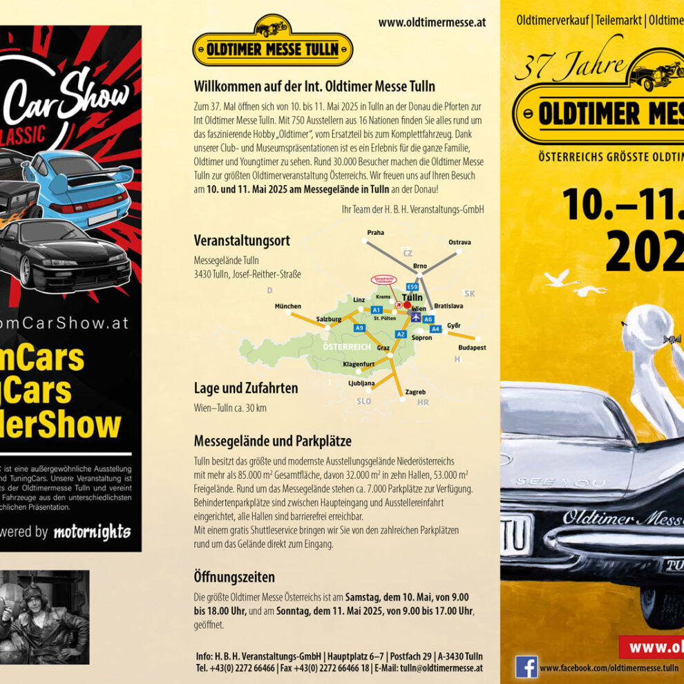 Wir freuen uns euch mitteilen zu dürfen, dass die CustomCarShow auch 2026 wieder Teil der Oltimermesse Tulln sein wird. Ab sofort könnt Ihr euch mit eurem Fahrzeug für die CustomCarShow 2026 ( 9.-10. Mai 2026 ) bewerben!