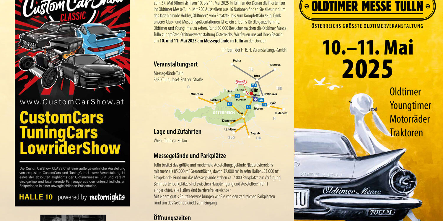 Der Countdown läuft: Vom 10. bis 11. Mai 2025 verwandelt sich das Messegelände in Tulln an der Donau wieder in ein Paradies für alle Oldtimerfans! Und das schon zum 37. Mal.